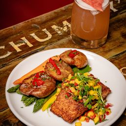 Blind Rabbit is a great place to hang out, have unique drinks, and grab a bite to eat. It is located at the Anaheim Packing District, so parking can definitely be tough on an evening or weekend. I recommended giving yourself a buffer of 15 minutes or so during busy times to find parking and walk over. My friend and I came here on a weeknight evening for drinks and light bites. We had a reservation so we checked in when we got to the hostess stand and were seated within 10 minutes. We entered through the door with all the sake barrels. The door handle has a rabbit on it which fits the name. Upon entering, the space is cozy and dimly lit, but very on theme with lots of wood decor and brick. We were seated at the bar which was nice because we were able to chat with the bartenders and see our drinks being made. We had two rounds of drinks plus the corn esquites and ceviche. For the first round, my friend ordered a Penicillin and I ordered a Sailing Before the Wind. For the second round, we ordered two of the Becoming the Memory. The drinks were all delicious and well-balanced. The esquites were flavorful with a tang of citrus and the ceviche was fresh. Both made for the perfect light bites. Overall, giving Blind Rabbit a 5/5. We loved the ambiance, all the decor, and sitting at the bar. Service was good and the staff are friendly. Highly recommend coming here for drinks and food. It's also a great place to bring people who are visiting from out of town as long as you can get a reservation.